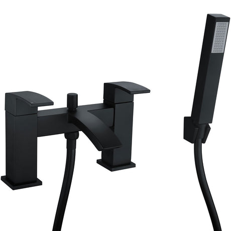 Astini Quadrado Matte Black Square Deck Mounted Bath Filler Tap