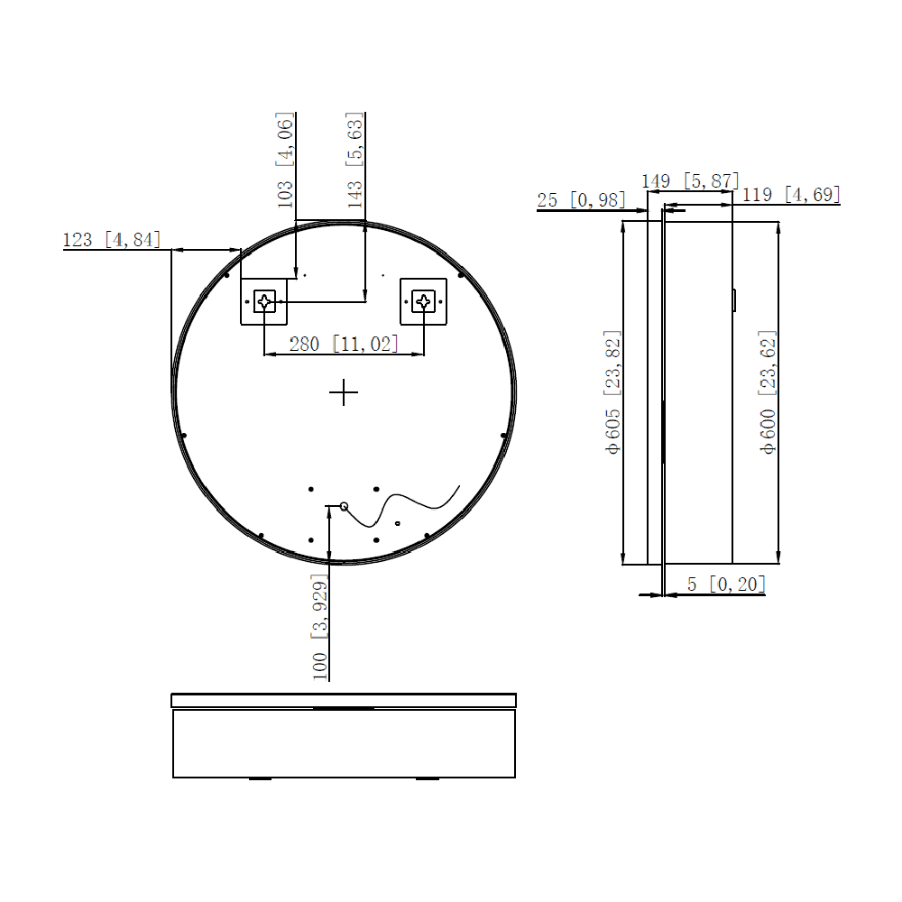 - Length (Left to Right): 600mm