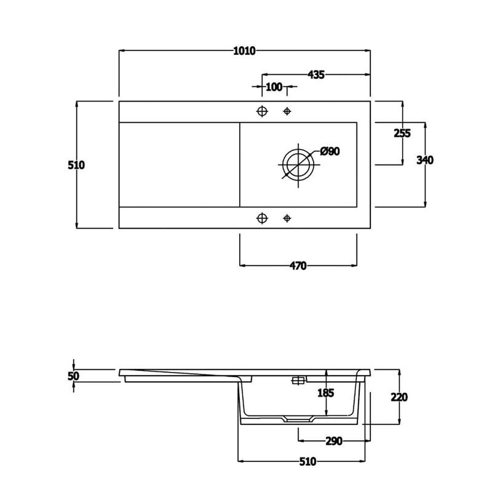 - Length (Left to Right): 1010mm