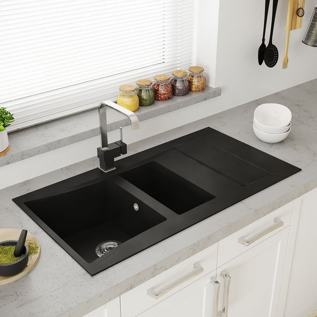 Astini Xeron 1.5 Bowl Black SMC Synthetic Reversible Kitchen Sink, Waste & Tap