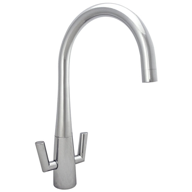 Astini Cosmopolitan Twin Lever Kitchen Sink Mixer Tap with Brushed Steel and Chrome Finish