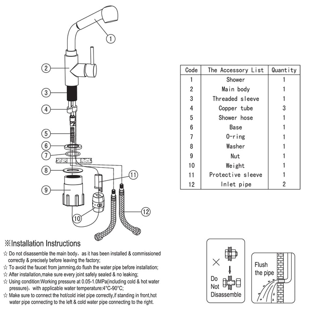 • Kitchen mixer tap hot and cold water connections
