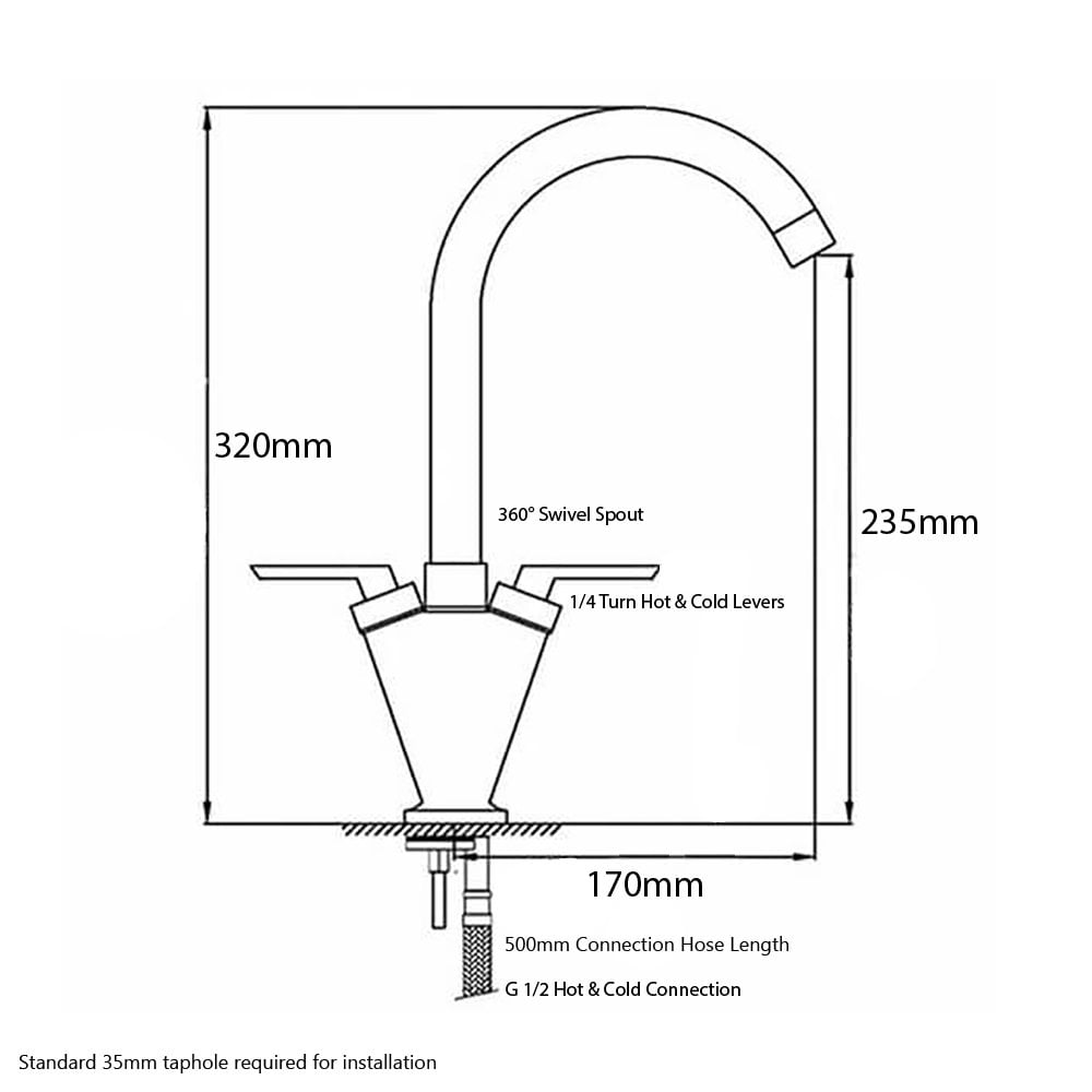 - Supplied with all necessary fittings and flexible braided stainless steel hot and cold connection hoses with standard 15mm connections, installation is simplified compared to traditional copper piping. The hoses feature self-sealing O-rings on the tap connection side, enabling hand-tightened connections and allowing the tap to be installed before connecting hoses.
