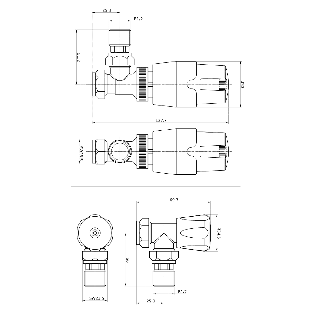 Astini Thermostatic Controlled Black Angled Radiator Valves