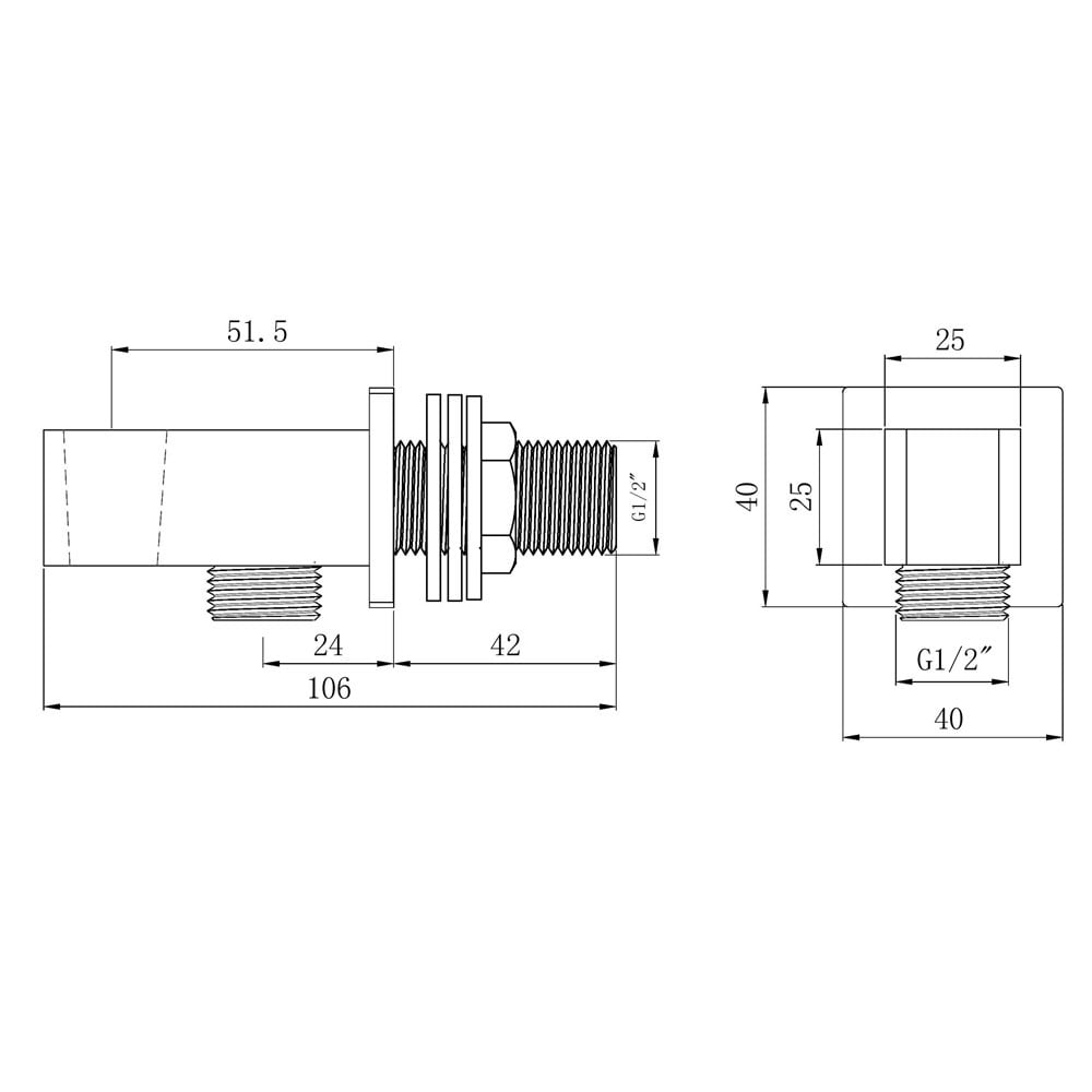 Astini Chrome Square Shower Outlet Elbow and Handset Holder