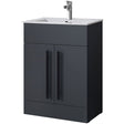 Astini Sorrento Shadow Grey 2 Door 600mm Vanity Unit & Basin - Black Handles