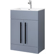 Astini Sorrento Tailored Grey 2 Door 600mm Vanity Unit & Basin Black Handles