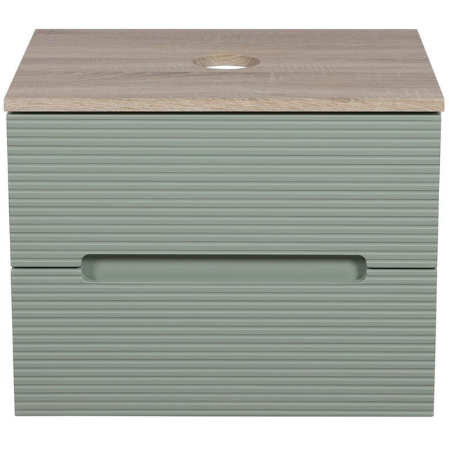 Astini Monza Plus 600mm Aloe Green/Contry Oak Fluted Wall Hung Vanity Unit With Counter Top