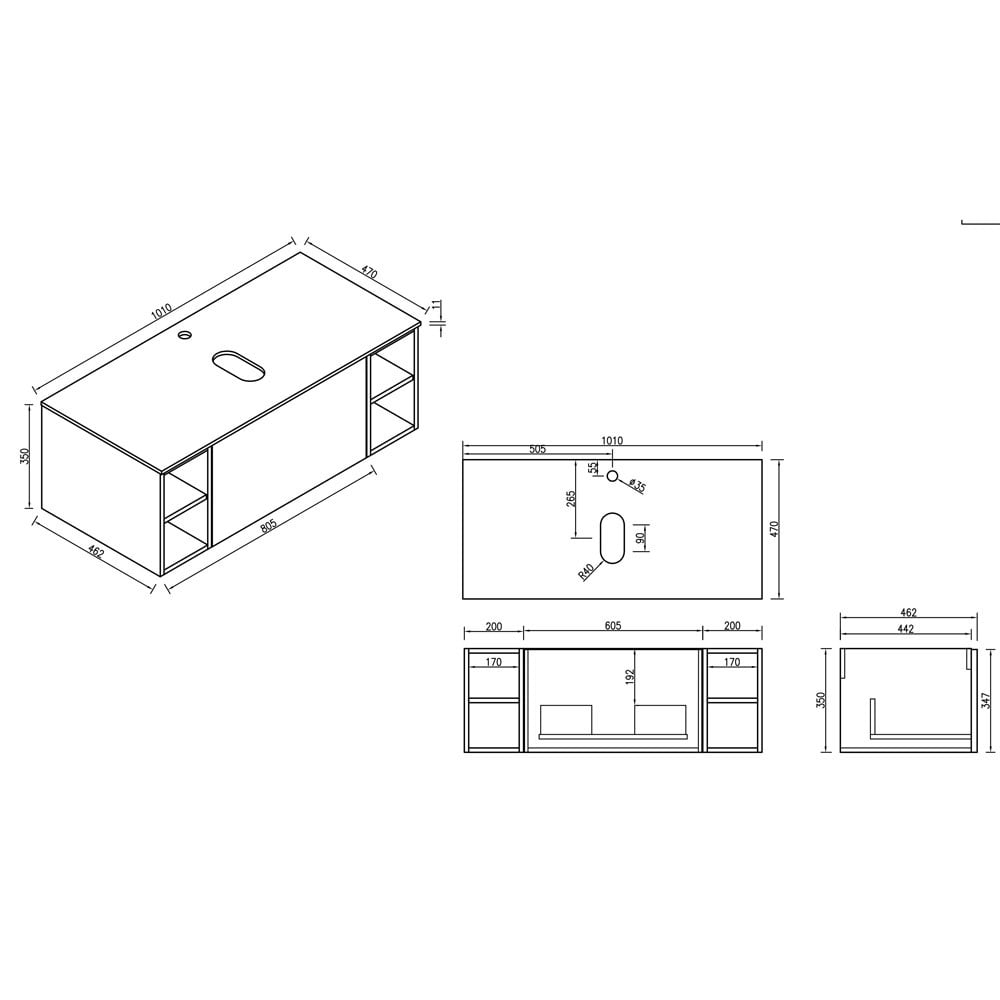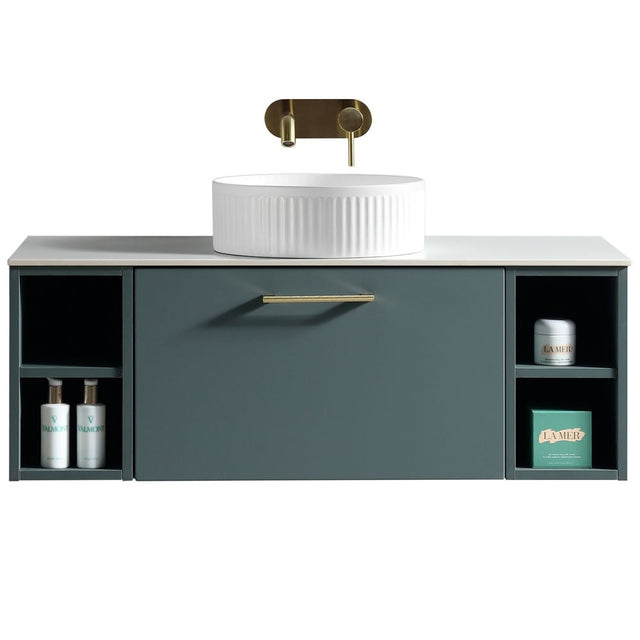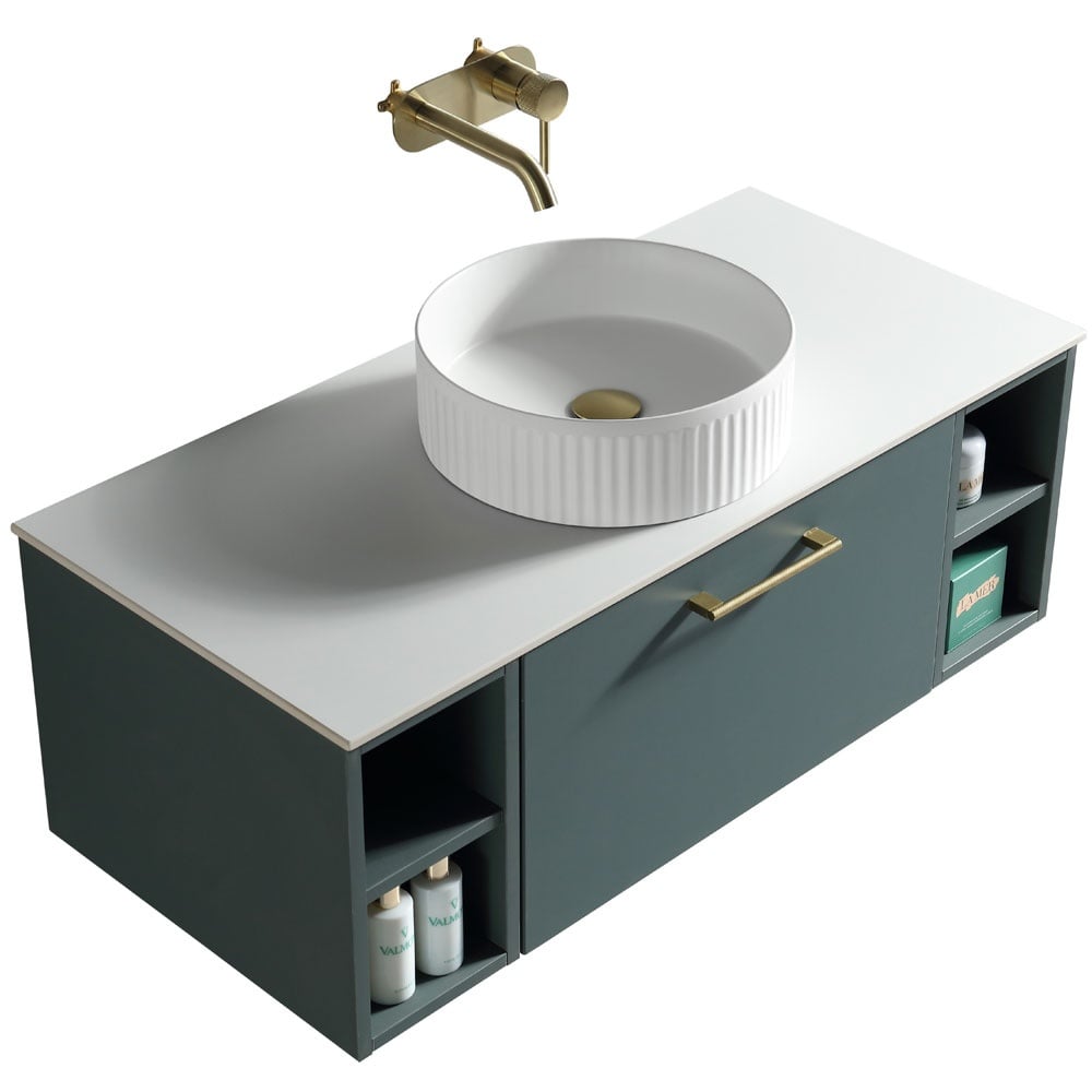 Astini Piatta 1000mm Smoked Sage Wall Hung 2 Side Storage Vanity Unit With Counter Top