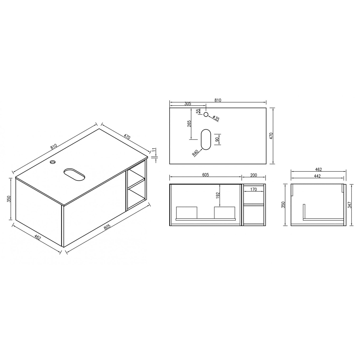 - Length (Left to Right): 810mm